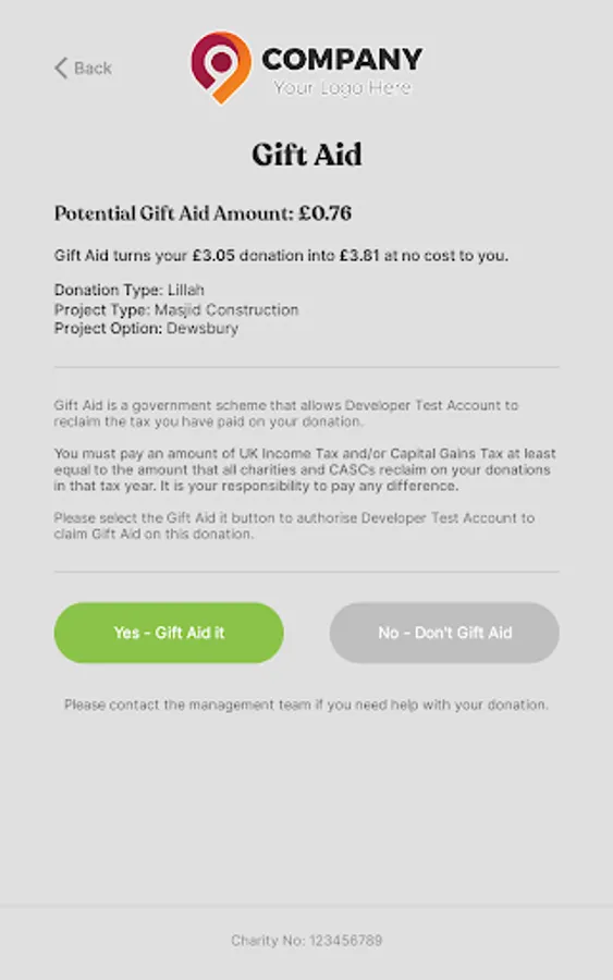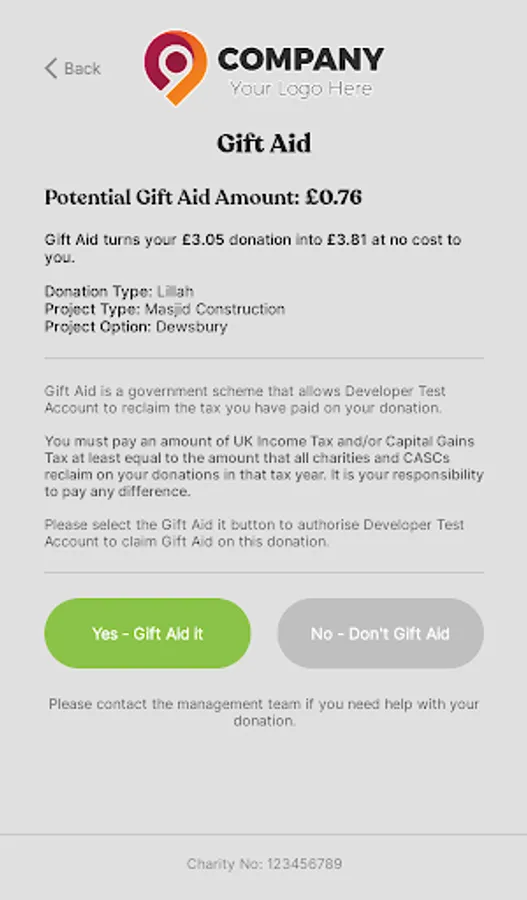 Gift Aid details are collected by the app for donors who opt in to GIft Aid. This information can be download from the easyDonate portal allowing charities to claim Gift Aid via the standard HMRC process. The reports also indicate which contactless none-Gift Aid donations are eligible for top-up payments under the Gift Aid Small Donation Scheme (GASDS).