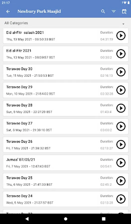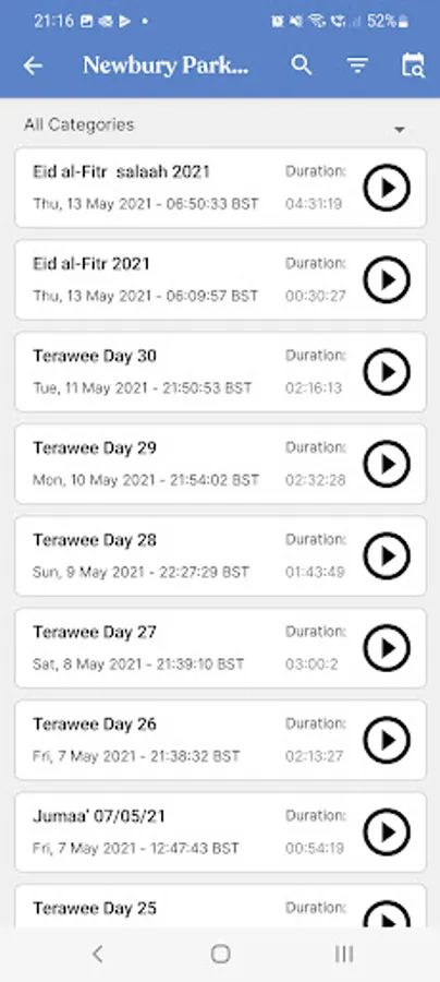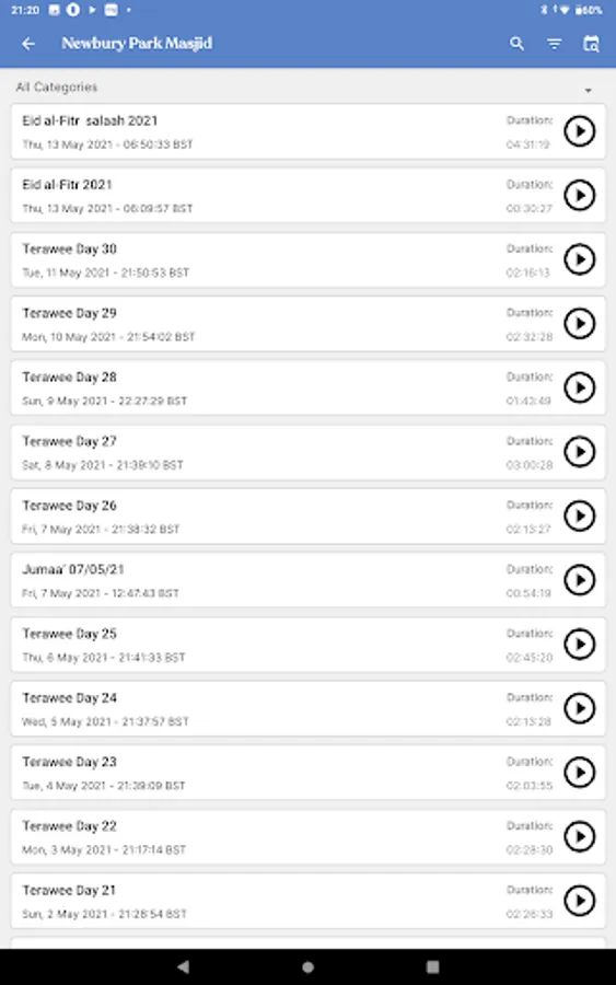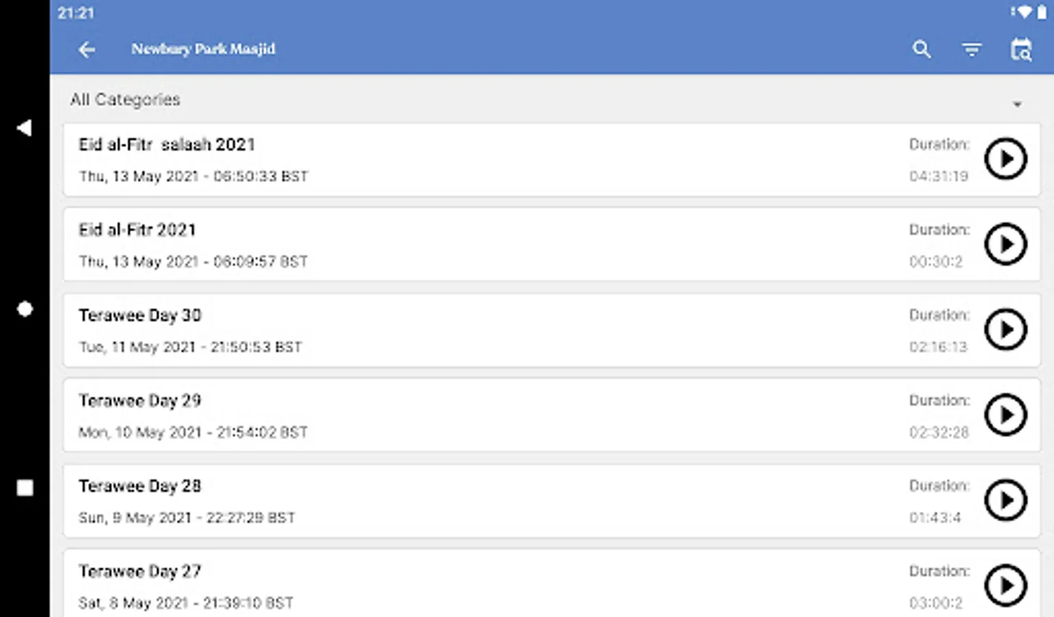 iMasjid Live also provides access to recordings of talks and events for many Masaajids.