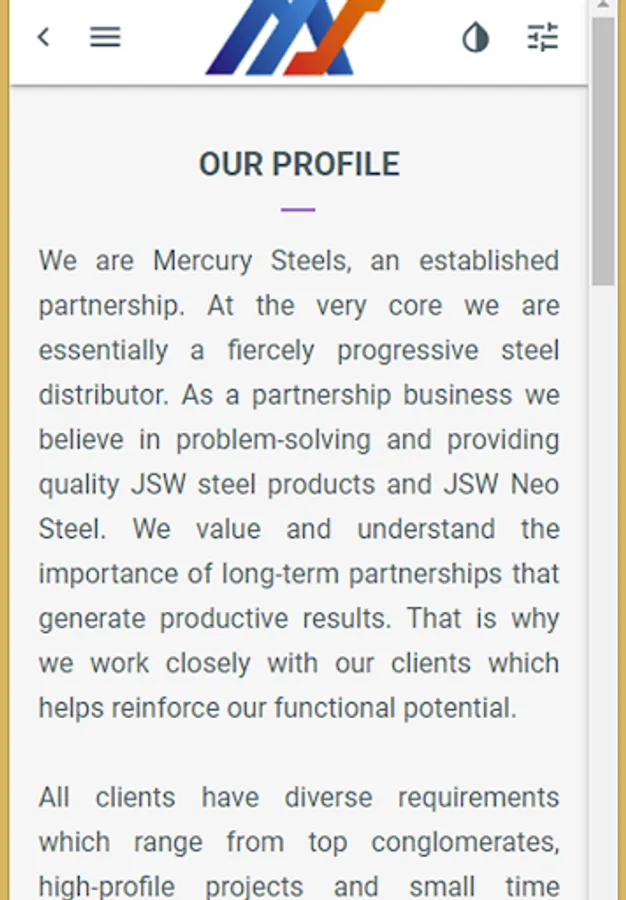 We are Mercury Steels, an established partnership. At the very core we are essentially a fiercely progressive steel distributor. As a partnership business we believe in problem-solving and providing quality JSW-steel products and JSW-Neo Steel. We value and understand the importance of long-term partnerships that generate productive results. That is why we work closely with our clients which helps reinforce our functional potential.