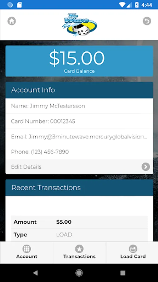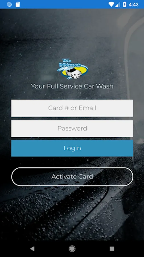 The Wave official car wash app allows you to log in with your card number to load money on your card, view your card balance, and see your previous transactions.