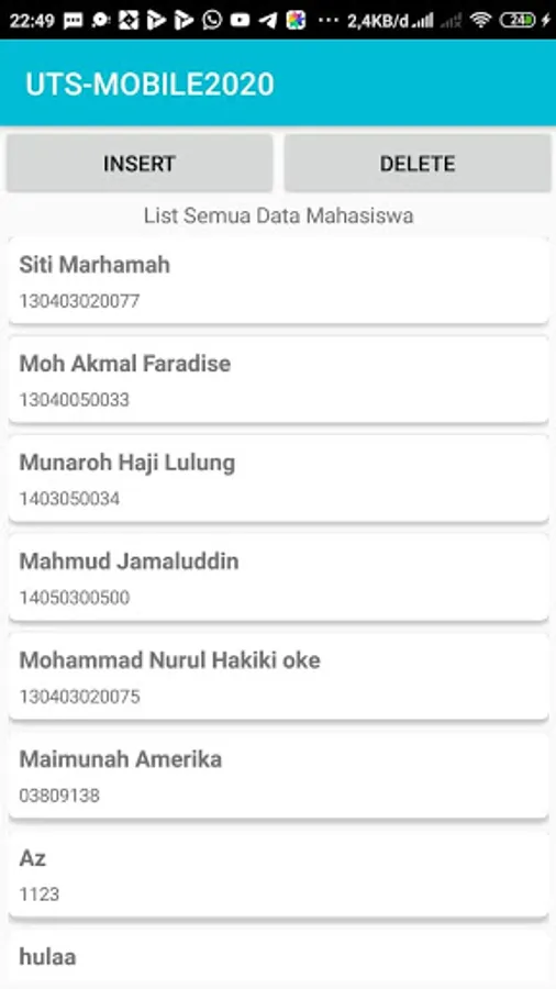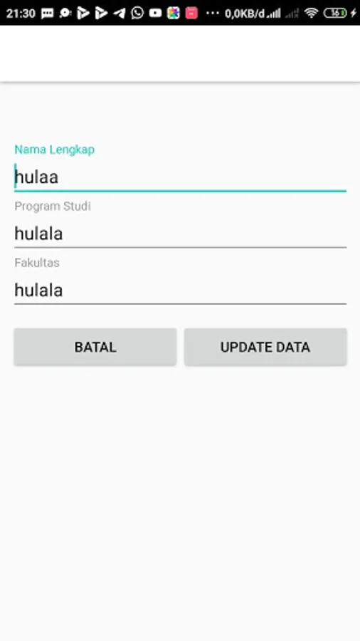 Aplikasi ini terdapat fiture basic crud ,register,login dan webview serta scrollactivity, dengan dibuat nya aplikasi ini yaitu sebagai syarat wajib untuk mengikuti ujian dan ini aplikasi bisa menjawab soal yang diberikan oleh dosen kami dan kami jawab dengan aplikasi ini,terimakasih