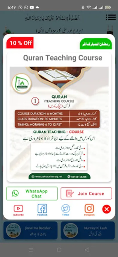 - Har raat men 15 saal tak Quran pak ka khtam krna