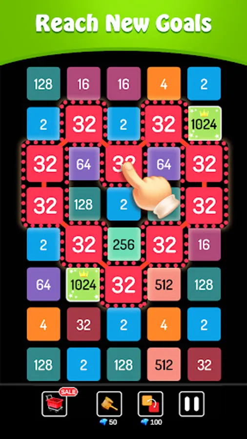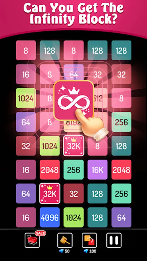 The goal is to link the number to merge and blast new higher numbers cube blocks / tiles. Eg. Double or more 2 -> 4 -> 8 -> 16 ->32 ->64 ->128->256->512->1024->2248,and so on till Infinity ∞.