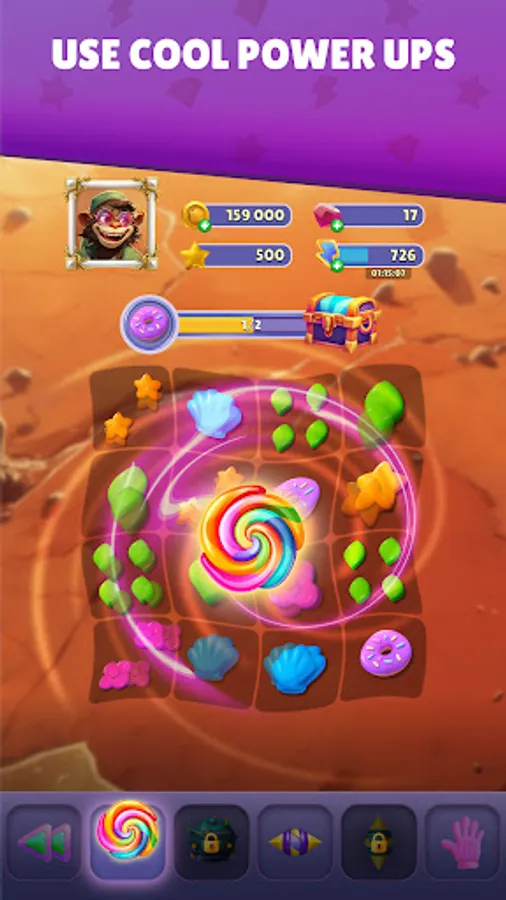 To help you along your journey, we have power-ups available! These power-ups can change the course of your game, adding an extra layer of strategy. Whether it's reshuffling the entire board, instantly removing an unwanted item, reversing your previous actions or interchanging two adjacent items on the board, these power-ups provide an exciting twist to your gaming experience.
