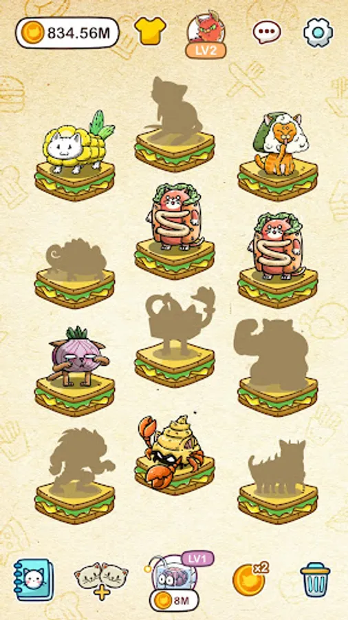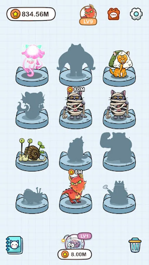 👉Merging two cats that are at the same level, you can get a new type and advanced cat. And the more advanced the cat is, the higher income it can bring to you!