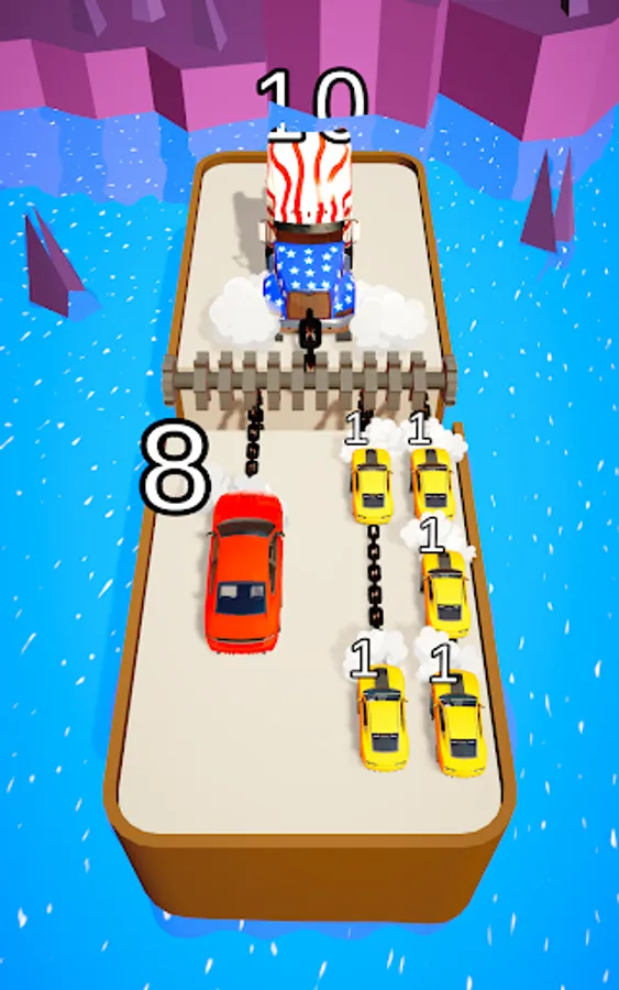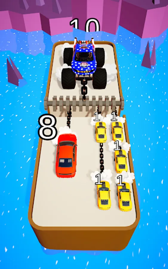 Merge Fight Trucks is a real-time strategy, epic car battle simulator where you solve the merging mechanic and tug opponent car to the shredder to destroy them.