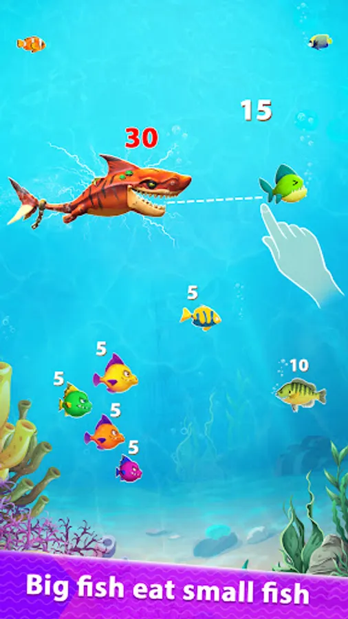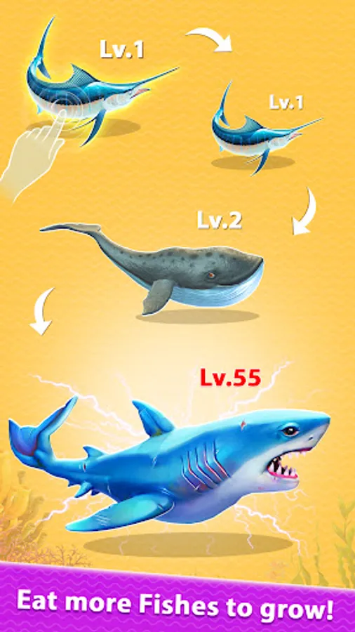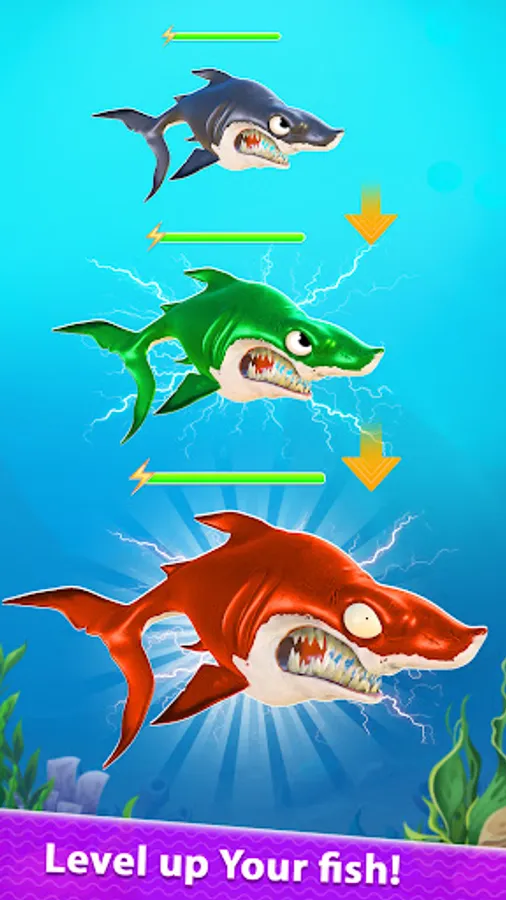 In ""Shark Evolution,"" you begin your journey as a humble and hungry fish, navigating the vast expanse of the ocean in search of sustenance of hungry fish games. As you devour smaller fish to satisfy your insatiable appetite, you'll embark on a mesmerizing evolutionary path. Witness the merge and fight of animal evolution games unfold as you adapt and transform, gradually evolving into larger, more formidable sharks with every mouthful of fish eater hungry fish games.