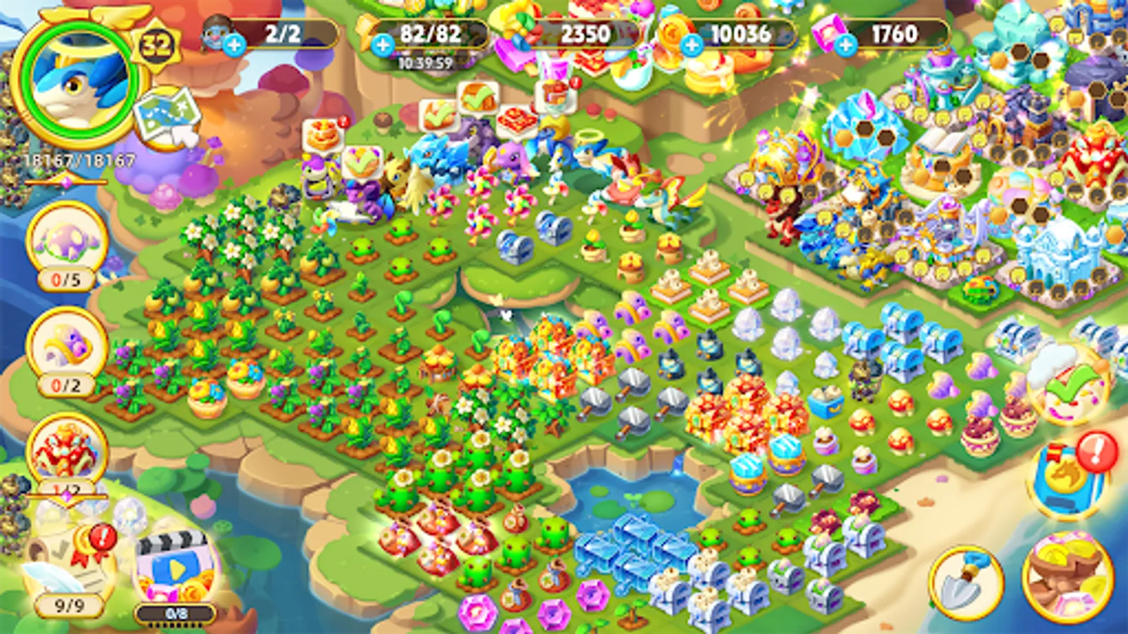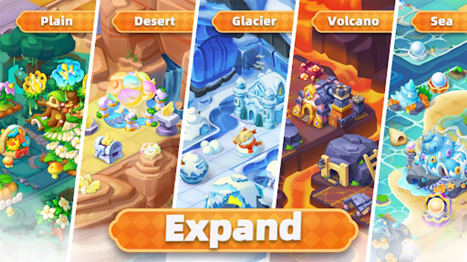 This is the mysterious Dragon Island composed of six continents: Yalf Island, Warner Islands, Muspel Island, Nifl Island, Midgard and Forgotten Beach. Collect a certain number of windmills through synthesis to dispel the fog on the island. Expand the land and discover more surprises!