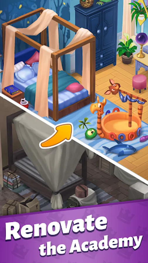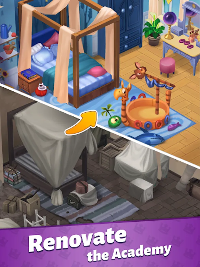 Mergic Academy is a magical puzzle game with a mansion makeover & decoration twist. The game was built by masters of casual puzzle games with the idea of presenting the best of two gameplay elements — renovation and merge in one unique merge adventure. This merge puzzle game offers deep and unique gameplay and has cutting-edge features to guarantee that it stays exciting and new.