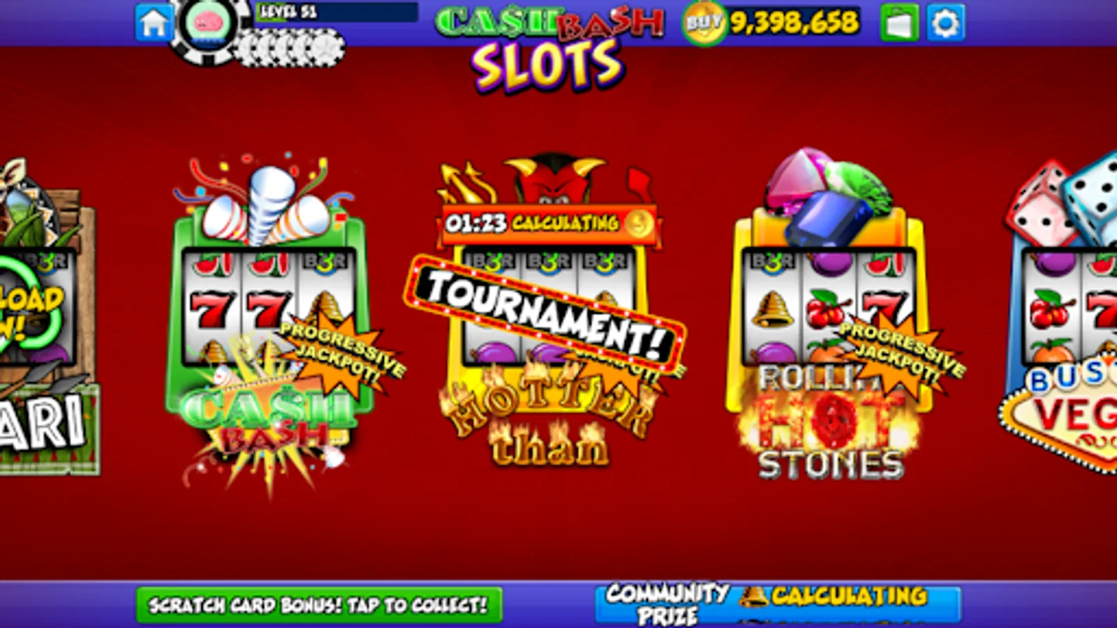 Come join in on the hottest and fastest growing slots game on the market! Cash Bash features great games, fun graphics, exciting sounds, and interactive social features that make Cash Bash fun and addictive. It’s easy to play, so you’ll be spinning and winning in no time. Level up to unlock new games with outrageous max bet amounts! Free spins, scatter play, multiple pay-lines and more!