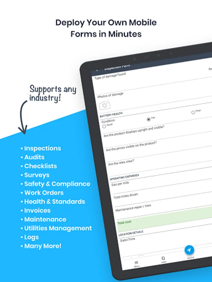 Instantly deploy your forms to a mobile workforce and collect cleaner richer information in real-time from your smartphones and tablets!