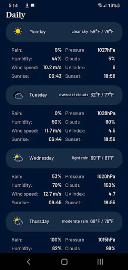 Our weather app is the only app that shows full detailed weather information for the full 7-day forecast. It is the best, most advanced weather app on the App Store.