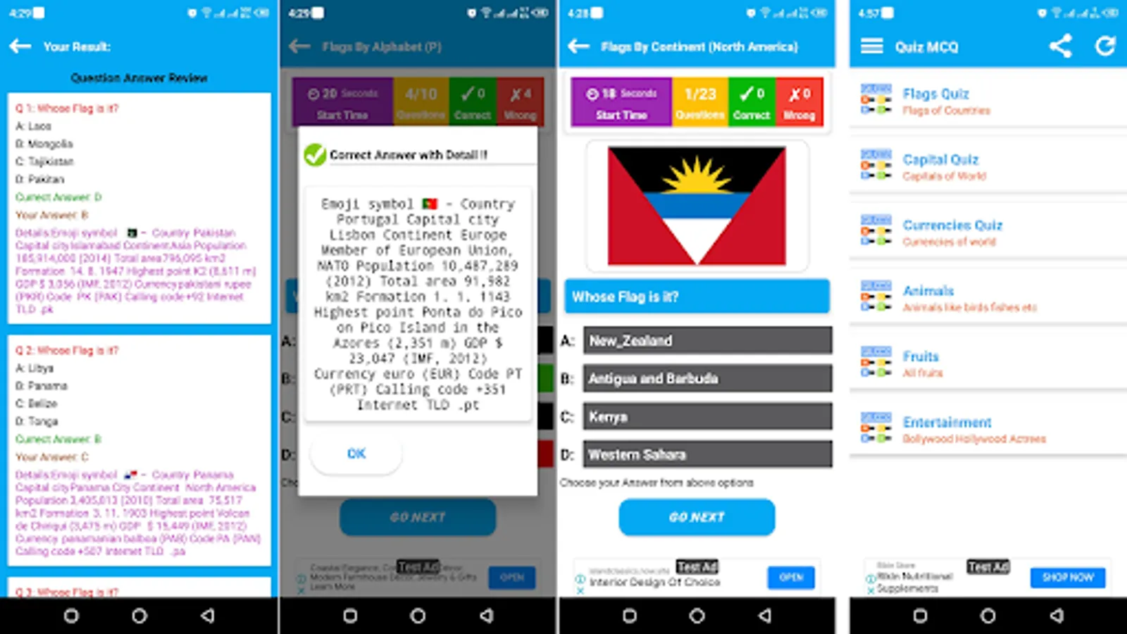 โ Flags Quiz / Currency Quiz / Capital Quiz / Logo Quiz