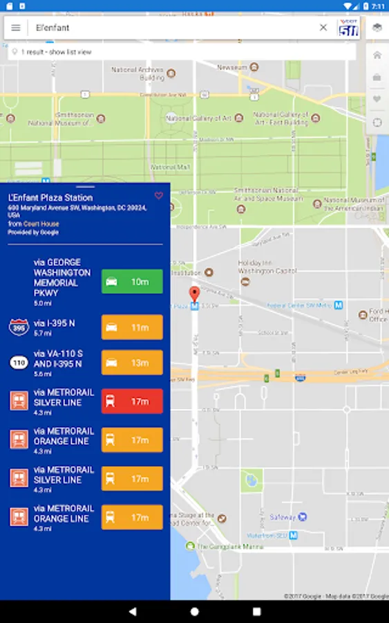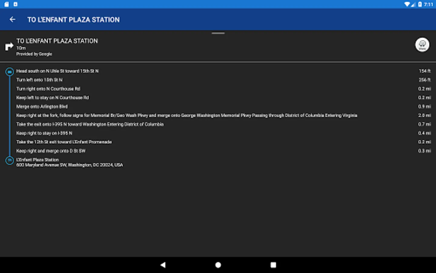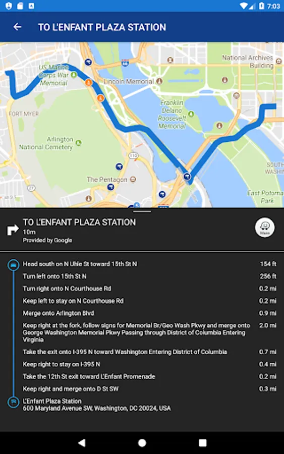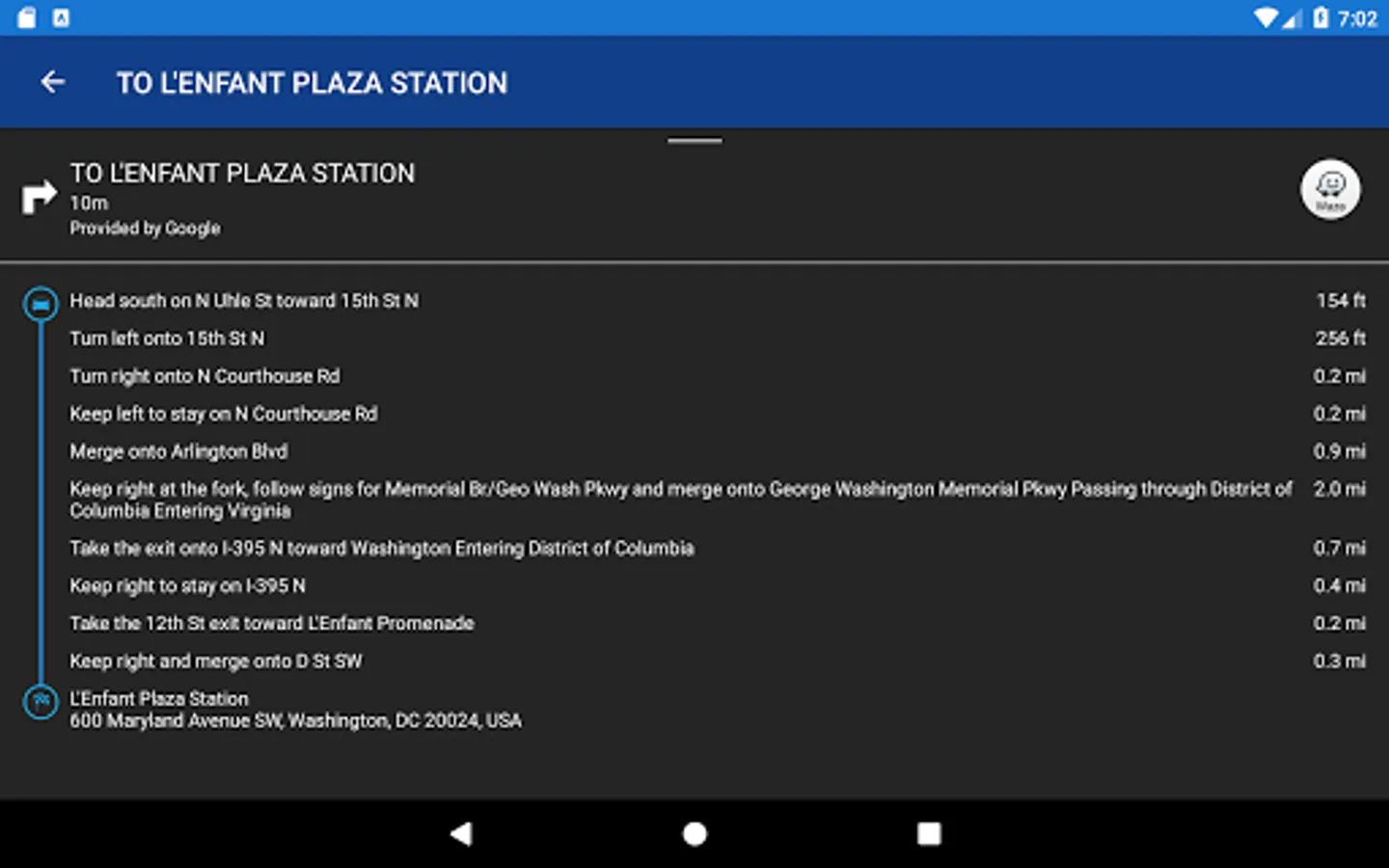 Additional information available in Northern Virginia includes VRE rail and PRTC bus schedules and routes, along with real-time VRE train locations. A unique feature provides a limited ability to see drive-to-transit options for these services when the “Nearby Transit Options” is selected from certain directions results. These services will be expanded in the future to include more agencies statewide. Other features in the app will also continue to be enhanced over time.