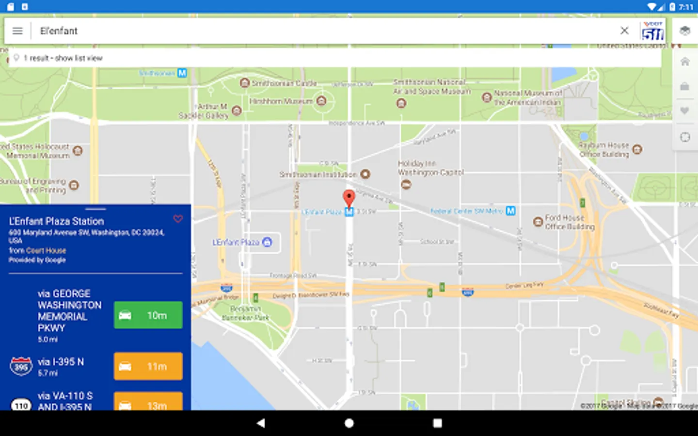 The Virginia 511 mobile application combines official information from the Virginia Department of Transportation (VDOT), driving and transit directions from Google, navigation with Waze, and other sources of information to provide a dynamic one-stop-shop for traveler information needs across Virginia.