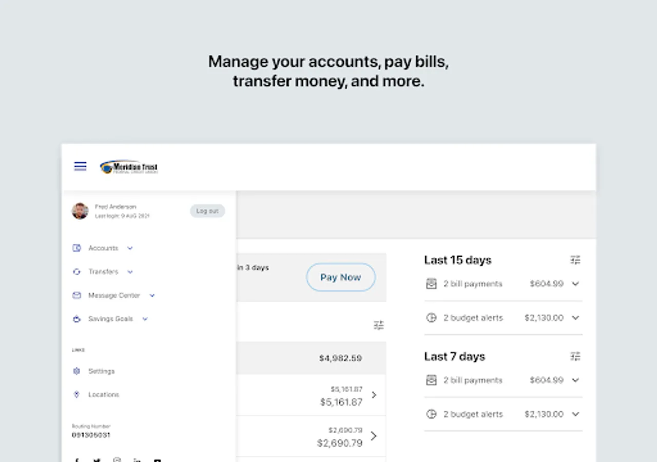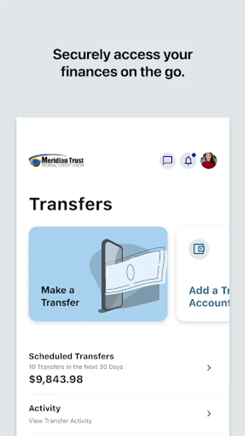 We combine freedom with security. Our mobile app has top notch multi-factor authentication and SSL encryption, to ensure you’re focused on soaring savings, instead of scheming scammers. With the dynamic duo of your smartphone and the mobile app, you can easily: