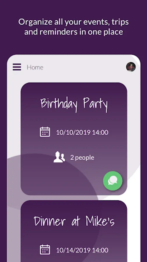 Organize events with your friends and let people know where and when, what to bring and let the app notify them when the event is approaching.