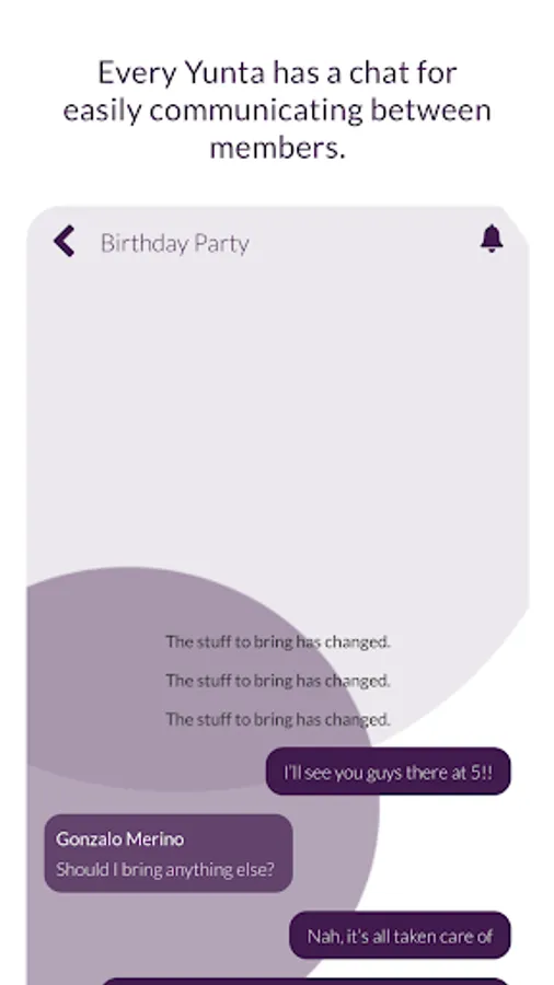 Create Yuntas specifically for an event with a select group of people. No more WhatsApp groups built for the occasion that linger forever after the event has come and gone.