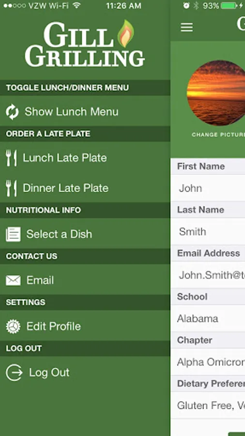 The Gill Grilling app provides menus and late plate ordering to our clients.