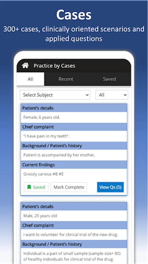 We recommend using the App for practice along with Dental Decks, Dentin and Mosby.