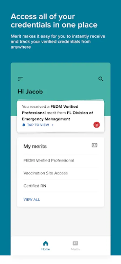 *Accept New Merits -- Receive and accept credentials (in the form of digital merits) from Merit-verified organizations. Every new Merit you receive will appear in your pending tab. Accept them in the App to add them to your profile.