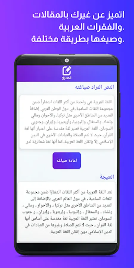 An easy and simple application to paraphrase Arabic texts, paraphrase Arabic sentences, and paraphrase Arabic research.