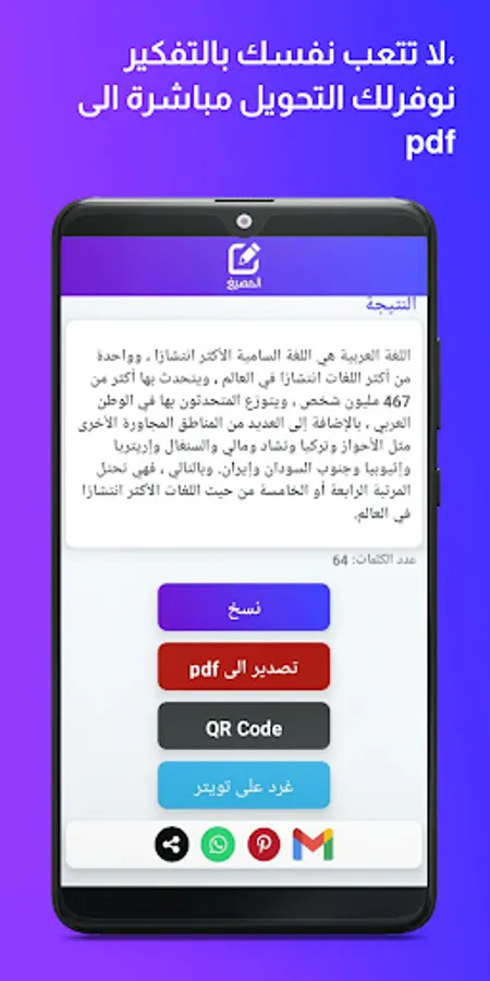 There are several features that the application provides to you after drafting the Arabic text, research, article, paragraph or sentence: