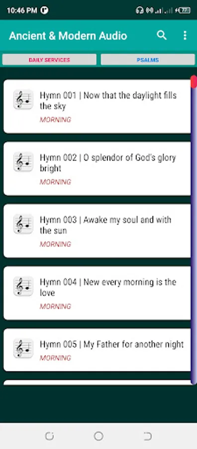 The Hymn App has the bests of Audio Piano Recordings of Anglican Hymns Ancient & Modern. Each Hymnal has an audio tune ready to sing along with, at any church or home.