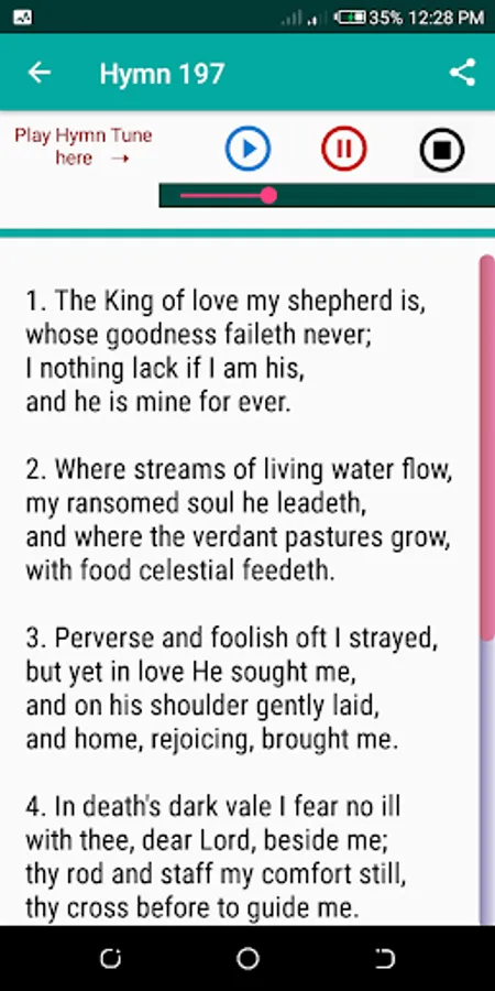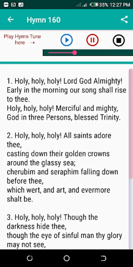 The hymn App also has the best and fastest search query with which you can search either by hymn title or hymn number. The hymn lyrics now has share icon enabled for easy sharing of hymn lyrics with friends and loved ones.