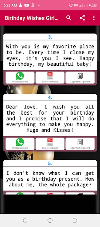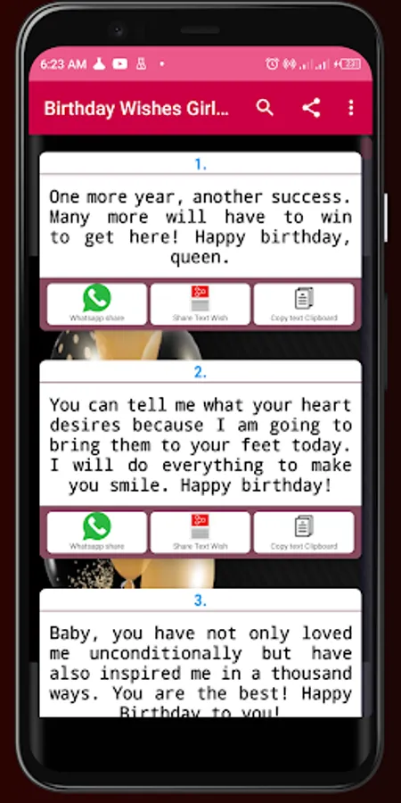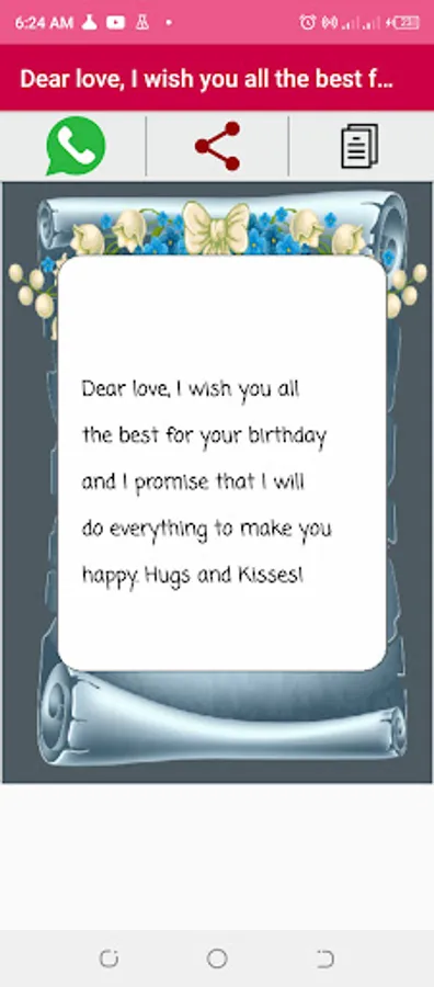 The App is user friendly. With just a click on “Share With” or “Copy Text To”, the App will automatically generate texts only for direct sharing/sending through SMS, WhatsApp, Gmail, Ymail, Twitter, Facebook, TrueCaller Messaging, etc. We created this App not for the money. Not for the fame. Not for the recognition. But for the pure joy of creating something useful and sharing it. We acknowledge freepik and various composers of these great messages.