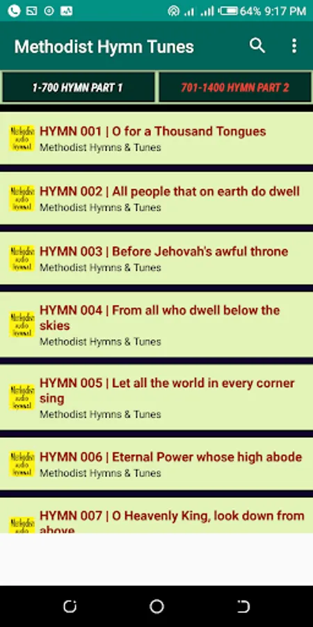"This is a complete Methodist Church Hymnal loaded with Audio tunes. It consists of Hymn Lyrics and tunes to more than 1,506 hymns as found in the British edition of the Methodist Hymnal used by the Methodist church worldwide. This application also contains the Methodist Church Liturgy, Canticles and extras use for Worship.