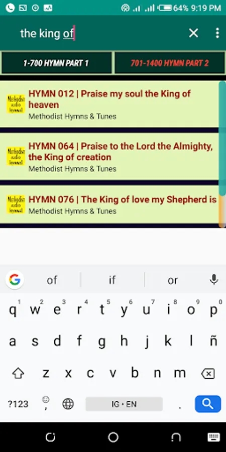 ✔ It has the fastest search query with which you can search the hymn title by letters or numbers"