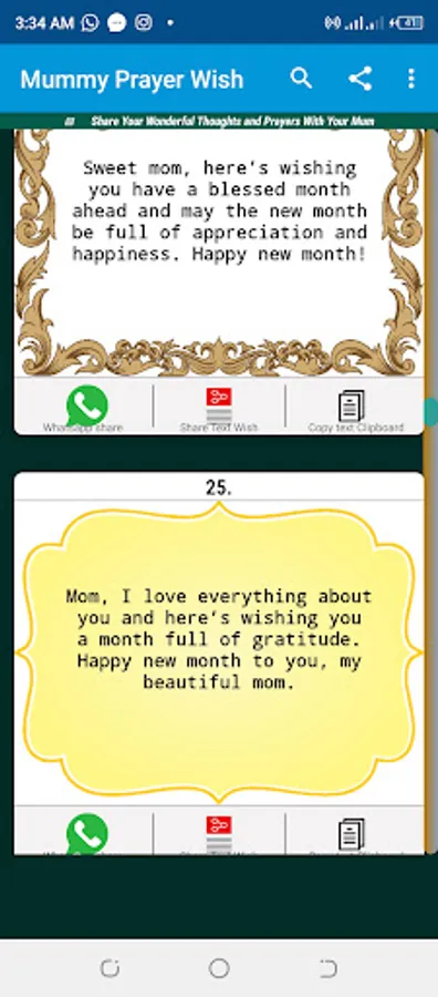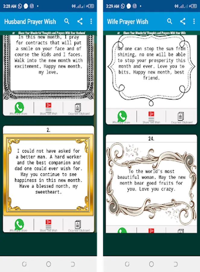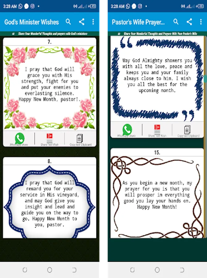 The App is user friendly. With just a click on “Share With” or “Copy Text To”, the App will automatically generate texts only for direct sharing/sending through SMS, WhatsApp, Gmail, Ymail, Twitter, Facebook, TrueCaller Messaging, etc. We created this App not for the money. Not for the fame. Not for the recognition. But for the pure joy of creating something useful and sharing it. We acknowledge composers of these great messages.