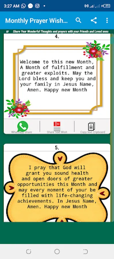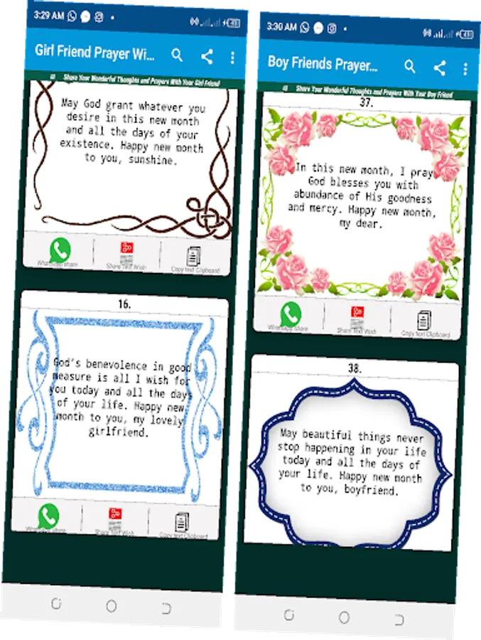 So, we felt the need to compile and save these Monthly text messages in this App for easy sharing with friends and loved ones. We sincerely hope that this wonderful Monthly prayer messages will present your views and good thoughts to your friends & loved ones. Our aim is for you to put smile on their faces. That is why we stored them for free use.