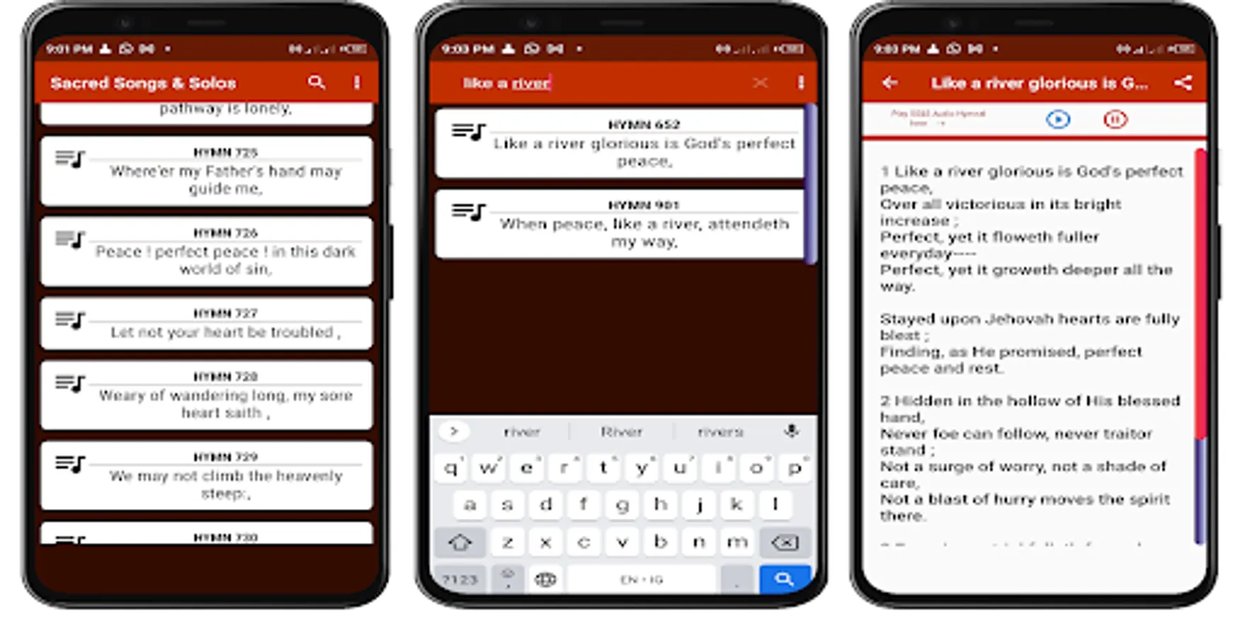 1. Has the fastest search query with which you can search the hymnal either by title or numbers