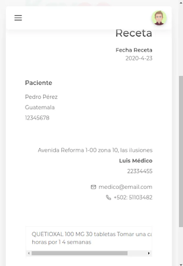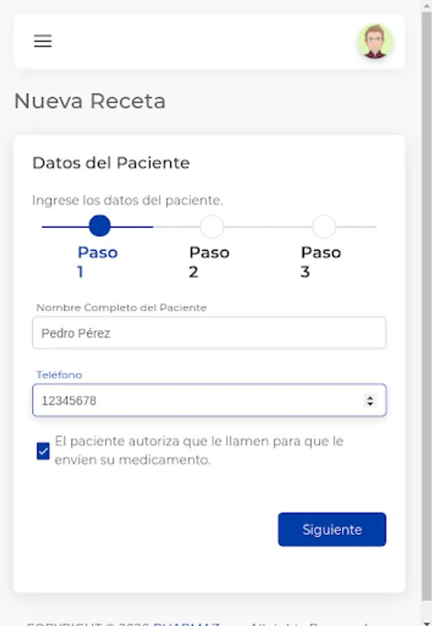 Application for the management of electronic Prescriptions requested directly to the laboratory, in which an agent will call the patient to bring the medicine to the door of his house.