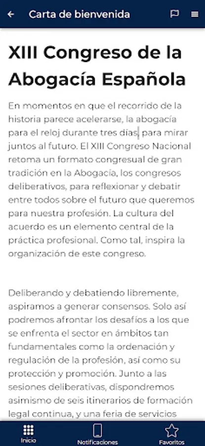 At a time when the course of history seems to be speeding up, the legal profession stops the clock for three days, to look to the future together. The XIII National Congress resumes a congress format with a great tradition in the Legal Profession, deliberative congresses, to reflect and debate among all about the future we want for our profession. The culture of agreement is a central element of professional practice. As such, it inspires the organization of this congress.