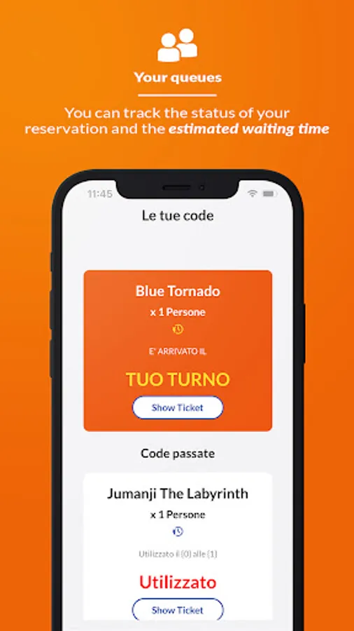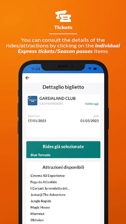 • Around 5 minutes before your turn, you will receive a notification telling you that “It’s almost your turn!”. Move towards the ride and you will then receive a message saying “It’s your turn”; go to the Gardaland Express entrance and rest your smartphone on the turnstile to gain access... and have fun!