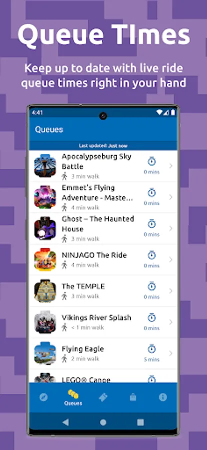 • See waiting times at rides and shows