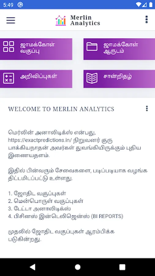 Merlin Analytics app provides the following services