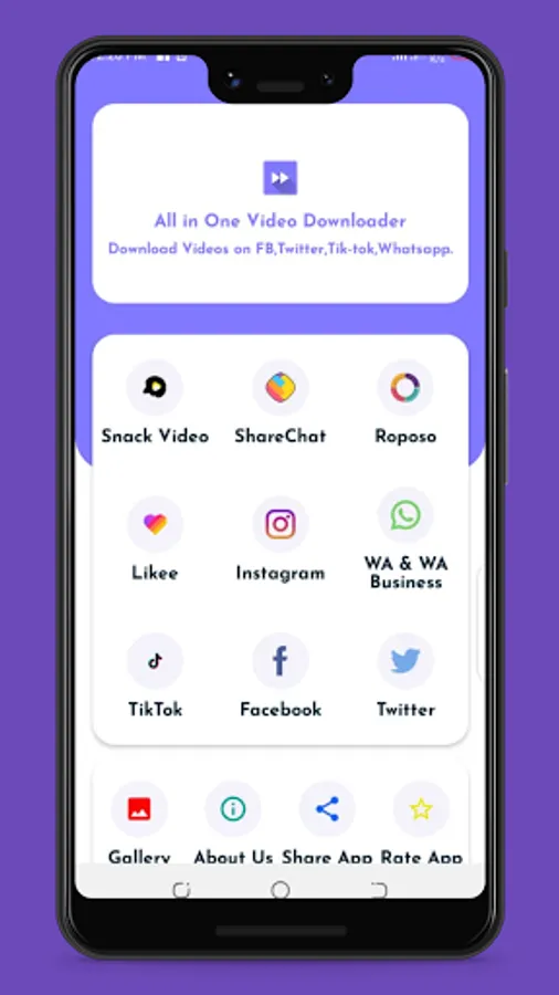 All in one Video Downloader enables you to Download Whatsapp Status, Facebook Video, Instagram Video, Twitter Video, TikTok Video, and lots more.