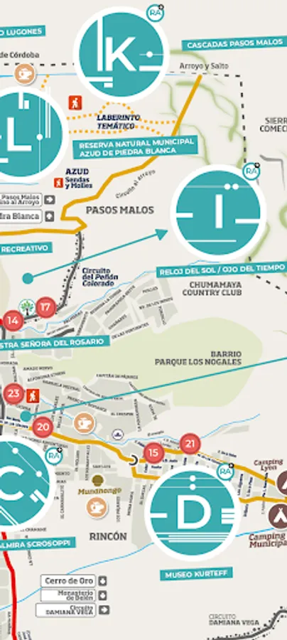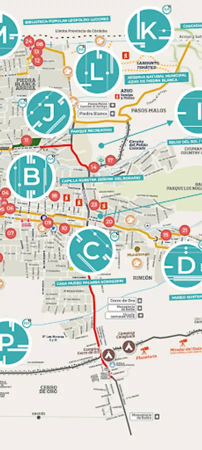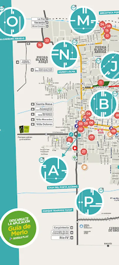 AudioGuide map of the Villa de Merlo with Augmented Reality technology through an app that can be downloaded to the cell phone.