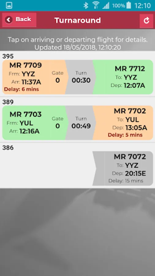 Users can also update actual flight times and add departure delay entries at their home port.