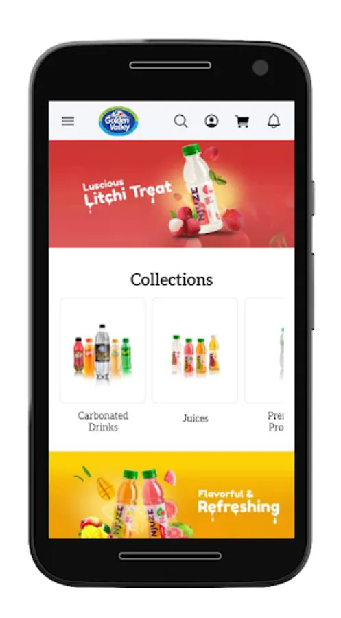 Golden Valley App is an online portal to buy carbonated drinks, water and juice products of Qlife Consumer Products from Nest Group such as Golden Valley Club Soda, Packaged Drinking Water, NJUZE fruit drinks and so on.