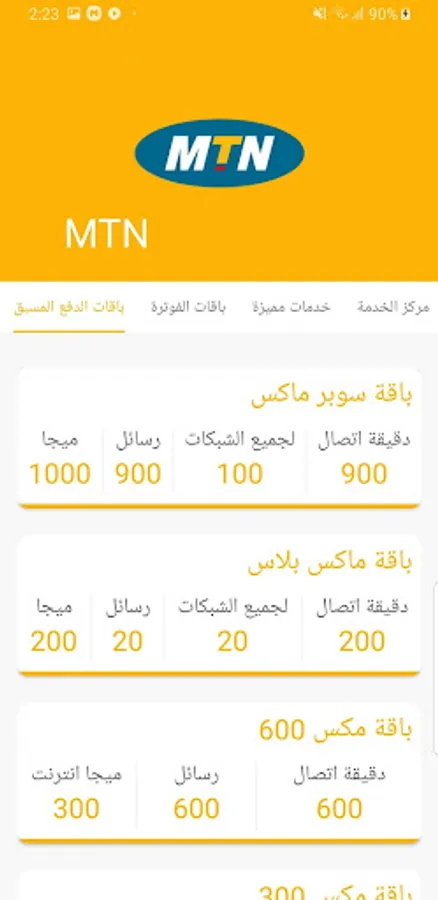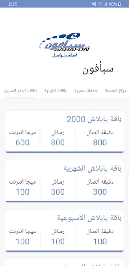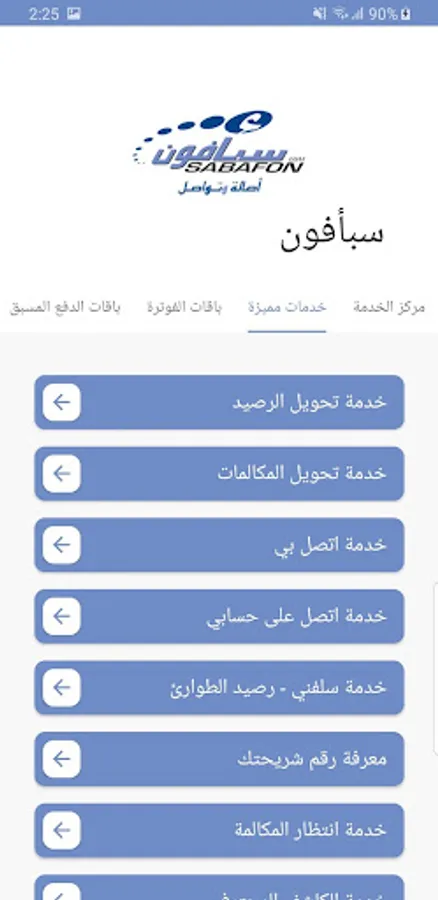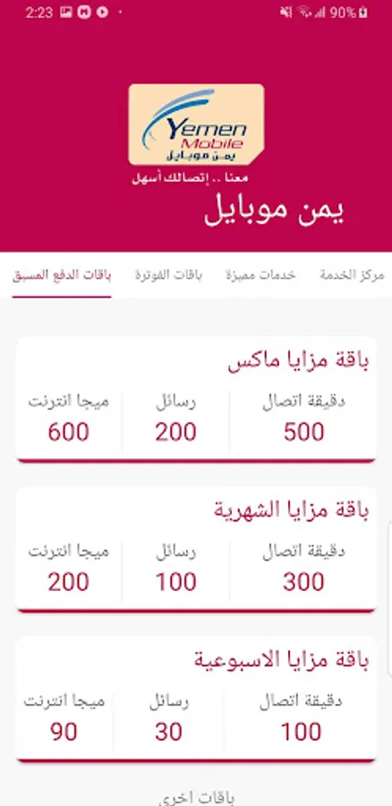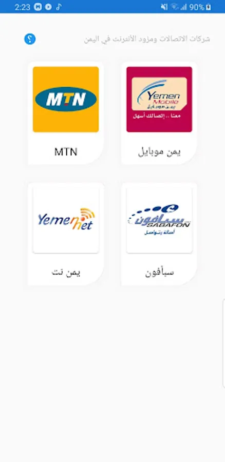 The application includes all Yemeni telecom companies (Yemen Mobile - Spafone - MTN - Yemen Net)