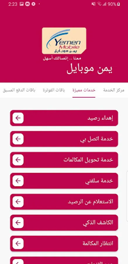 The "Yemeni Telecom Network Services" application is a comprehensive service application for all Yemeni telecom companies' services.