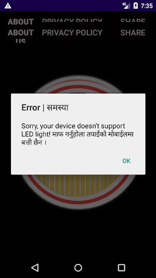 Don't worry !!! there will be alert displayed about your flash (LED) status when this application is being opened.