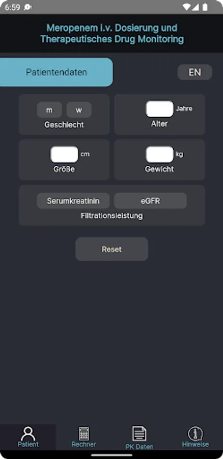 Disclaimer: MeroEasy was created for personal use only. In all cases, use of any result generated by MeroEasy is at the sole risk and responsibility of the MeroEasy user. Therapeutic decisions should not be based solely on MeroEasy, as the information provided by MeroEasy is not a substitute for clinical judgement. Although MeroEasy has been carefully validated, there is no guarantee of the accuracy of the results provided. By using MeroEasy, you automatically agree to this disclaimer and the legal information.