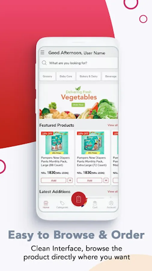 The Kirana App is built to shop for multiple items at once. Keeping true to this nature, The Kirana App, allows you to switch between categories and add items to cart with ease.