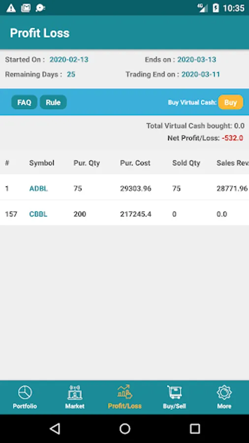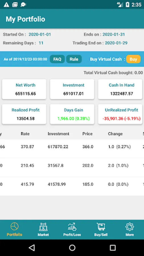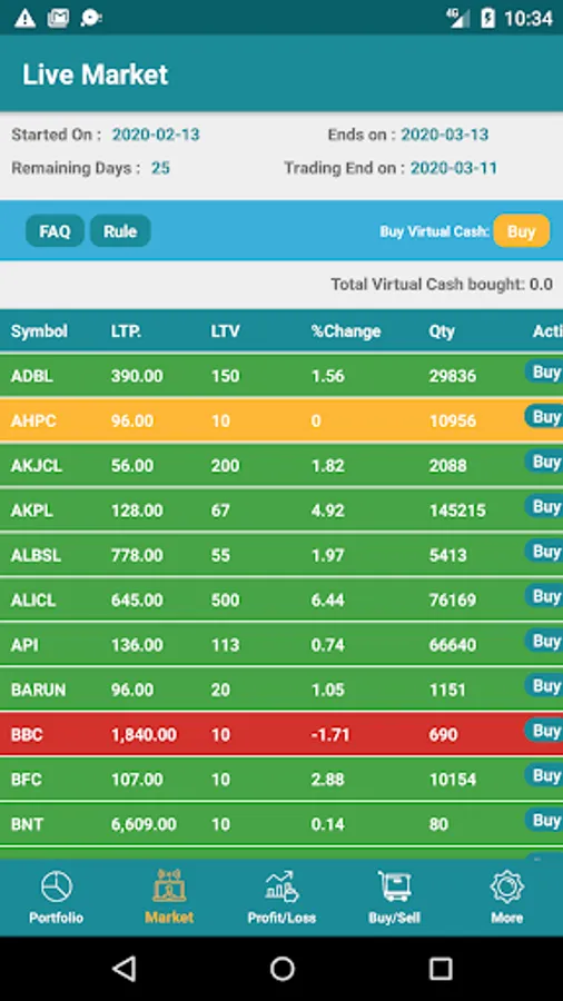 Virtual Trading is a service package provided by MEROLAGANI, which allows the trader to gain experience of the actual stock trading world. The system provides virtual cash to the registered users, which they can invest in the virtual stock market. In virtual trading, traders can learn about the stock market without risking real money. Users can also purchase additional virtual cash by using real money.